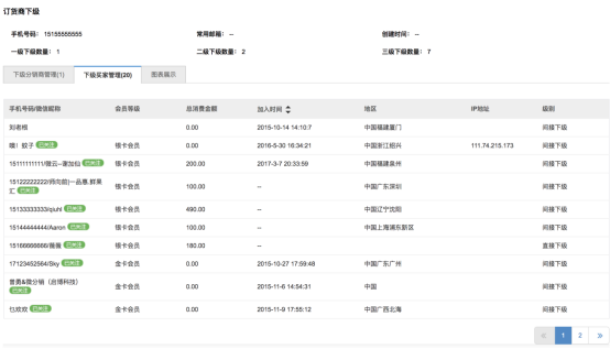 业绩统计:统计的是当前一条线上所有订单,比如:A之前不属于我这条线,现在调整上下级属于我这条线上,那么A之前的订单也会累计到我的身上,A的佣金也会累计到我身上。