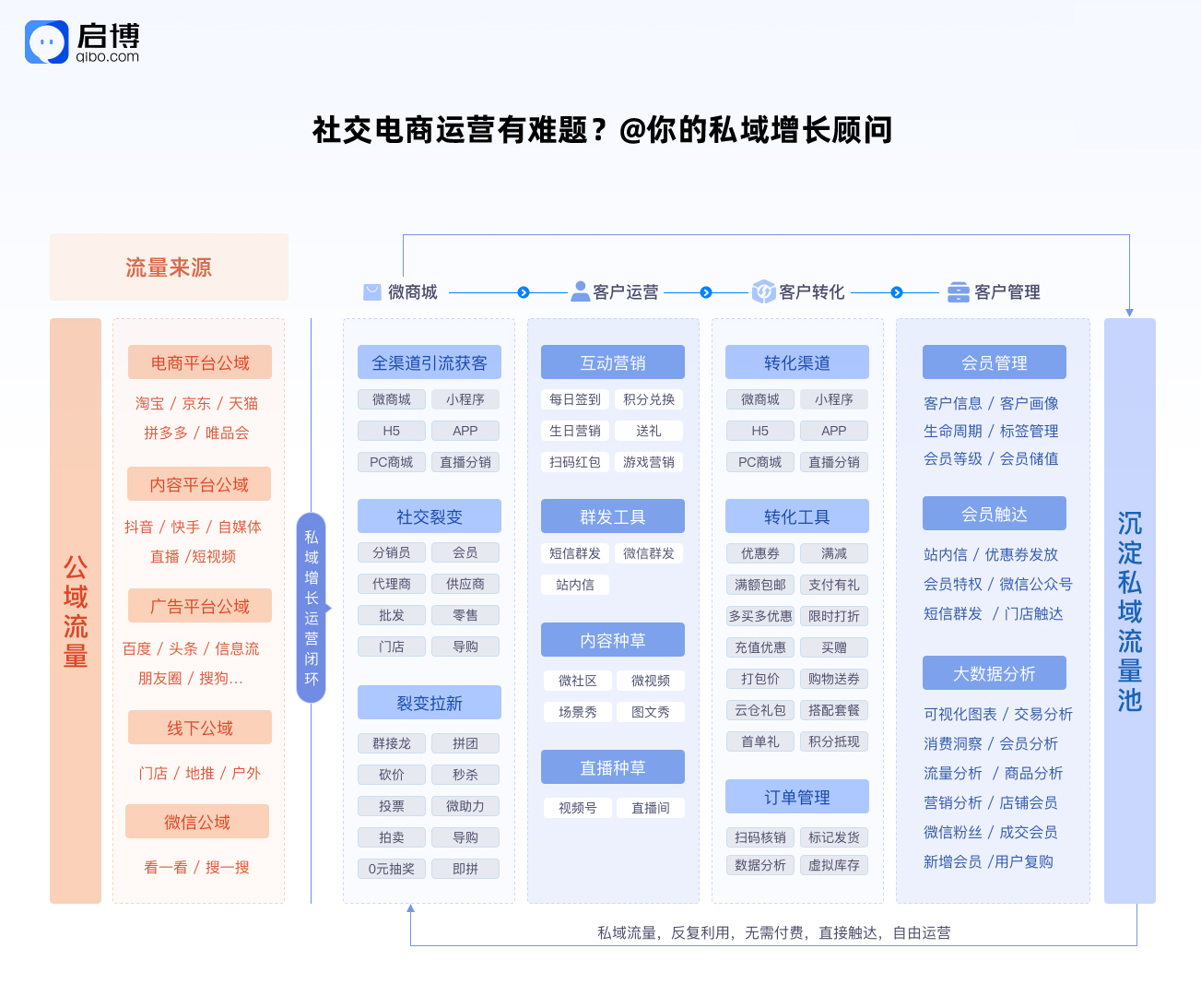 有了以上4点,门店商家是不是觉得获取流量也不是那么难呢?启博的智慧新零售解决方案,就是为了帮助商家打通线上线下消费场景,实现门店数字化转型。启博拥有15年电商软件开发经验,已经有60万商家使用启博微分销小程序微商城系统开店,在未来,启博将会持续为各位商家提供最优质的系统和服务,让门店实现线上线下多渠道运营,业绩翻倍!